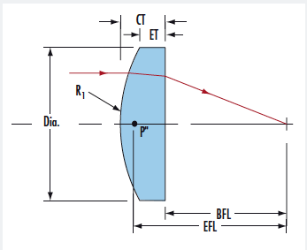 平凸透鏡一面凸面一面平面,具有正焦距,為減少球差,平凸透鏡用于準(zhǔn)直光束聚焦時(shí),光束應(yīng)入射到透鏡曲面上;用于點(diǎn)光源準(zhǔn)直時(shí),光束入射在平面上。