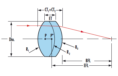 雙膠合透鏡是將兩個透鏡膠合在一起得到的透鏡。這種用兩個透鏡形成的組合透鏡是一種取得短焦長、大放大率和較好成像質(zhì)量的有效方法。